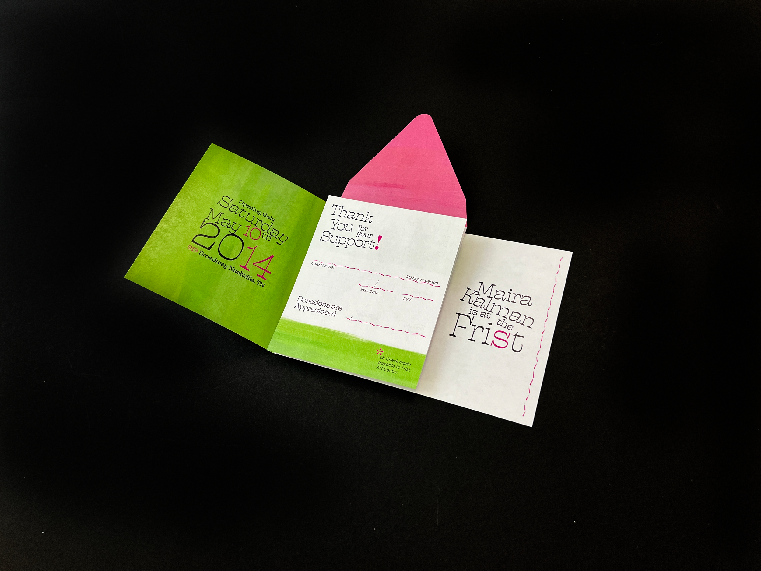 Maira Kalman’s eclectic, playful, and vibrant art inspired me to interpret the organic placement of everyday objects in her work typographically. It was a tough balance between sophistication a gala event requires, and the playfulness that Kalman’s paintings deserve. This project taught me a lot about handling large amounts of copy and interpreting concepts typographically.